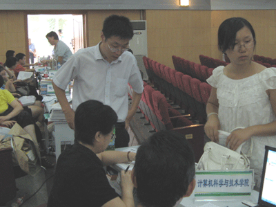 8月30-31日,計算機學院2010級研究生新生入學報到。按學校統一部署,學院在東區大禮堂設置了迎新點。30日中午起,迎新老師和新生聯絡員同學們各就各位,開始迎接陸續到校的新生同學。學院黨總支書記嶽麗華教授、副院長陳恩紅教授也先後來到迎新現場進行檢查指導。