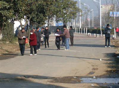 先行的同學在沿途和景區及周邊向市民散發傳單,