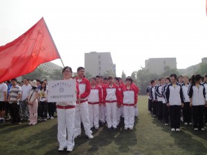 上午8:00 舉行運動會開幕式。我院組成了60人的方陣,身著印有“計算機學院”字樣的紅色運動服,精神抖擻。統一的著裝和整齊的陣列在早晨的陽光下格外顯眼。這也得到了鹿明副書記的大力讚揚:“沒想到大家對首屆研究生會的重視程度比全校的學生運動會還要高,對此我感到格外的驚喜和欣慰”。