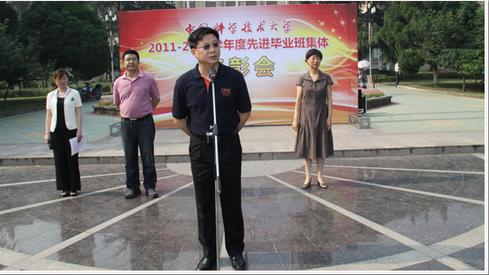 6月13日上午,學校在郭沫若廣場隆重舉行2011-2012學年度先進畢業班集體表彰會。校黨委書記許武、副書記鹿明,學生工作部(處)長董雨、副部(處)長尹紅,獲得表彰班級的輔導員班主任、學生代表參加了表彰會。