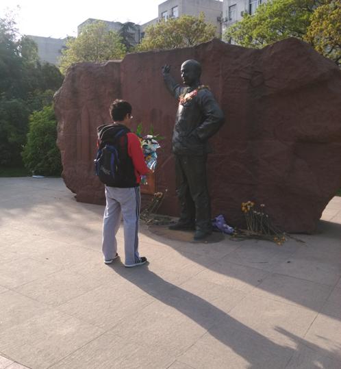 秦成鵬同學講話結束之後,陳泊遠同學帶領大家在錢老銅像前默哀3分鍾,表達對錢老的敬意。整個過程氣氛肅穆、鴉雀無聲。沉默寄托了我們對於錢老的深切崇敬之情。默哀結束後,全體同學繞錢老銅像一周表達對錢老的懷念之情。