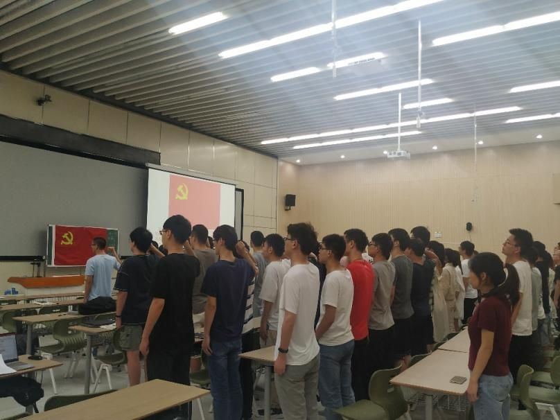 最後,由支部組織委員秦振宇同學作為領誓人,帶領全體黨員同學重溫了入黨誓詞,本次支部活動在各位同學滿滿的感悟和收獲,以及鏗鏘的誓言中圓滿結束。
