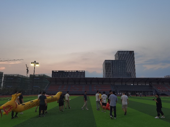天色已晚,運動會也接近尾聲。運動會結束後,黨員誌願者留下來幫助清理場地。