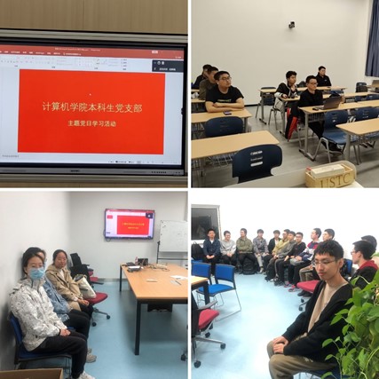4月19日,學院黨委召開了學習貫徹習近平新時代中國特色社會主義思想主題教育動員大會,按學院黨委部署和要求,充分考慮不同年級本科生黨員校區距離較遠的實際情況,黨支部本科生黨支部於4月24日晚上7點在西區電三樓419辦公室和高新園區GT-B103教室舉行了一場“隔空連線、集中學習”的別開生麵的主題黨日活動,開展學習貫徹習近平新時代中國特色社會主義思想主題教育,集中學習習近平總書記關於教育、科技、人才的重要論述以及習近平總書記考察科大時的講話精神。支部副書記趙雅楠主持會議。