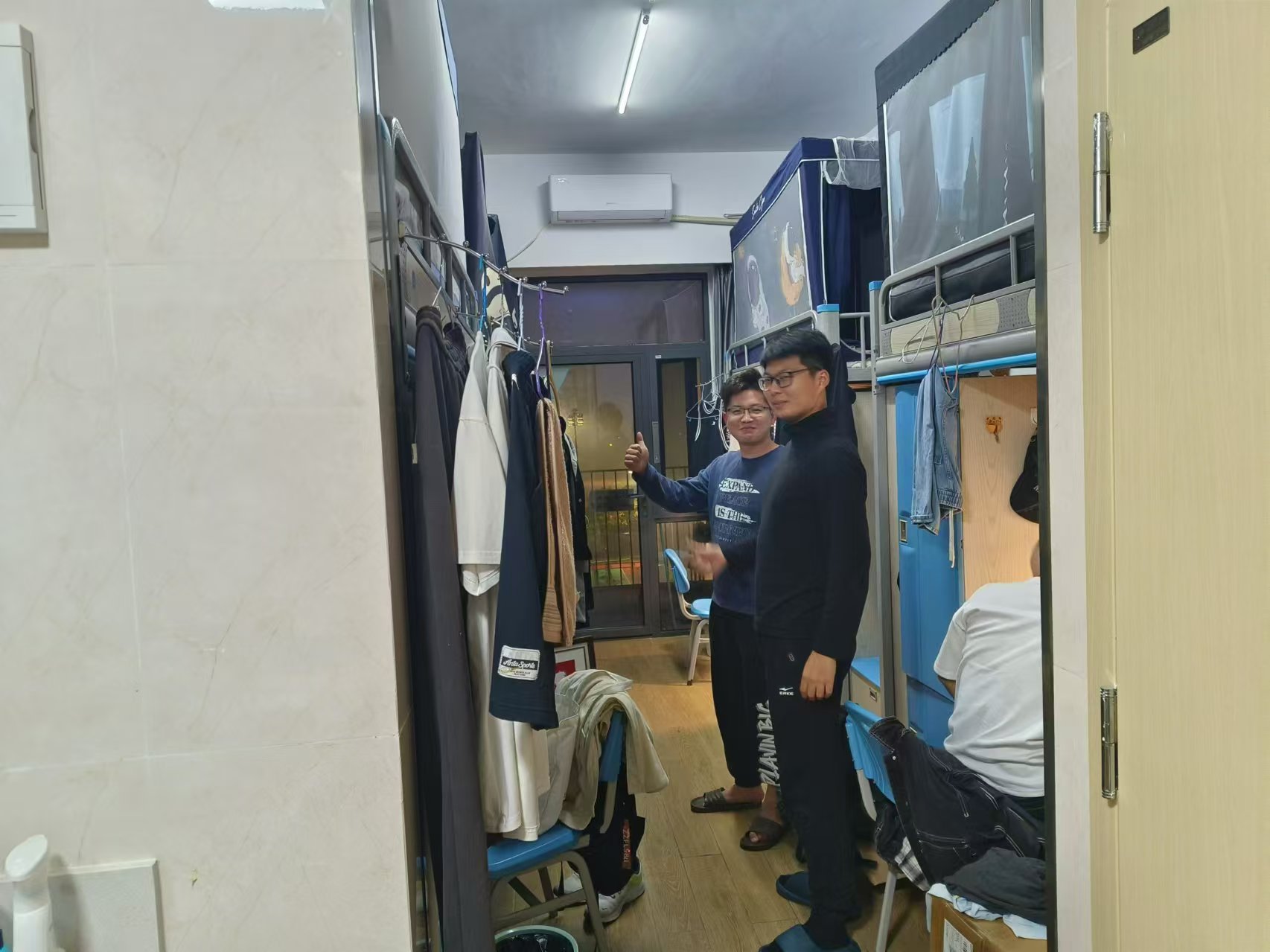 各位班委依次來到各個宿舍進行走訪檢查,重點檢查了宿舍中的相關電器,排查有無違規電器或者違規使用水電等行為。強調同學們要從平時做起,嚴格遵守宿舍相關規定,不觸犯攜帶易燃物品、私接電線,使用大功率電器的相關紅線,共同保障寢室的文明安全。其次,各位班委也對寢室衛生情況做了檢查,提醒同學們擺放收納私人物品要整齊有條理,避免出現占用過多公共空間等不文明現象。