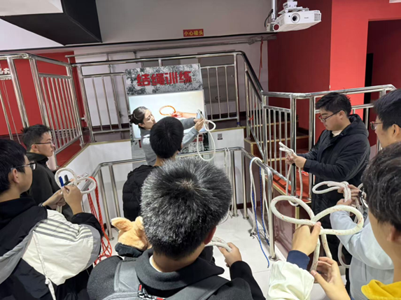 通過講解員專業的講解與同學們認真的學習,同學們重點掌握了繩結的係法、煙霧下的逃脫方法、以及滅火器的原理和用法,並對火災的成因和應對策略有了更清晰的認識,有效地增強了消防意識和能力。