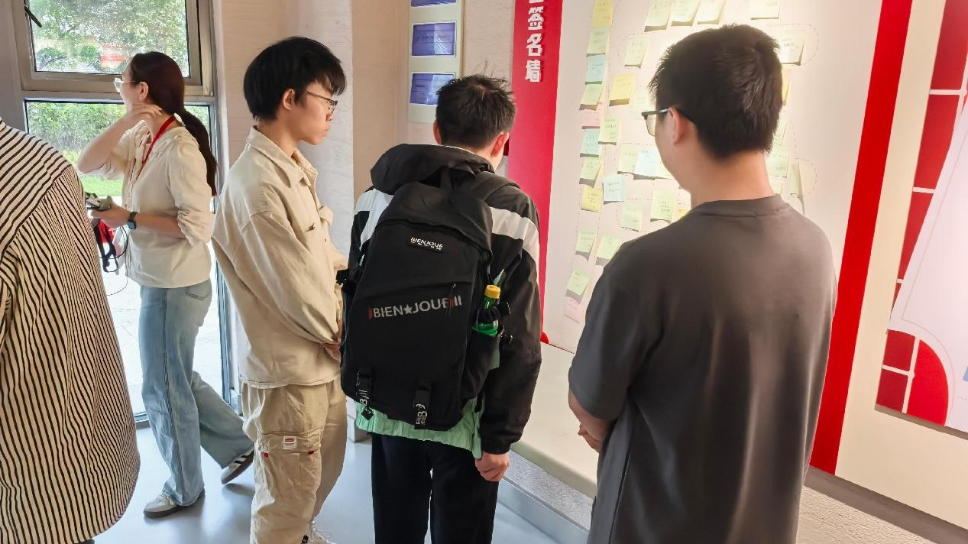 在簽名牆邊,同學們看到了許多之前來參觀的師生留下的心得與留言。有的同學觀後有感而發,拿起紙筆留下了自己的感想。